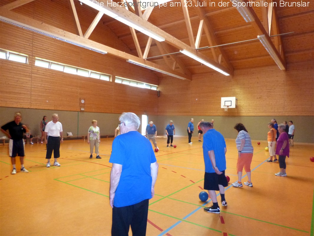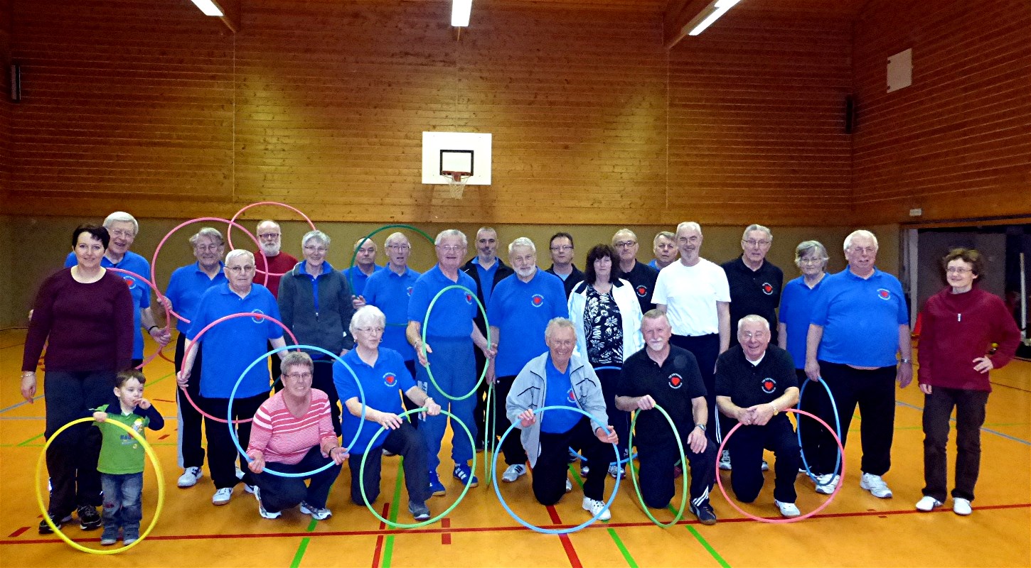 Unter fachlicher Leitung von Ulrike Seyfahrt und unter ärztlicher Aufsicht – hier Herr Dr. Meinhard Rudolph neben Gruppenleiter Dietrich Bürger (rechts hinten) – machen die Übungsstunden den Teilnehmern der Herzsportgruppe stets viel Freude.