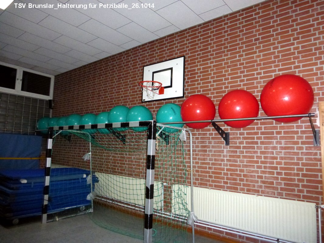 Nachdem die Fa. David die Halterung für die neuen Gymnastikbällen in der Gymnastikhalle angebracht hat (siehe Foto), kann nun das Fitnesstraining mit den Bällen beginnen.