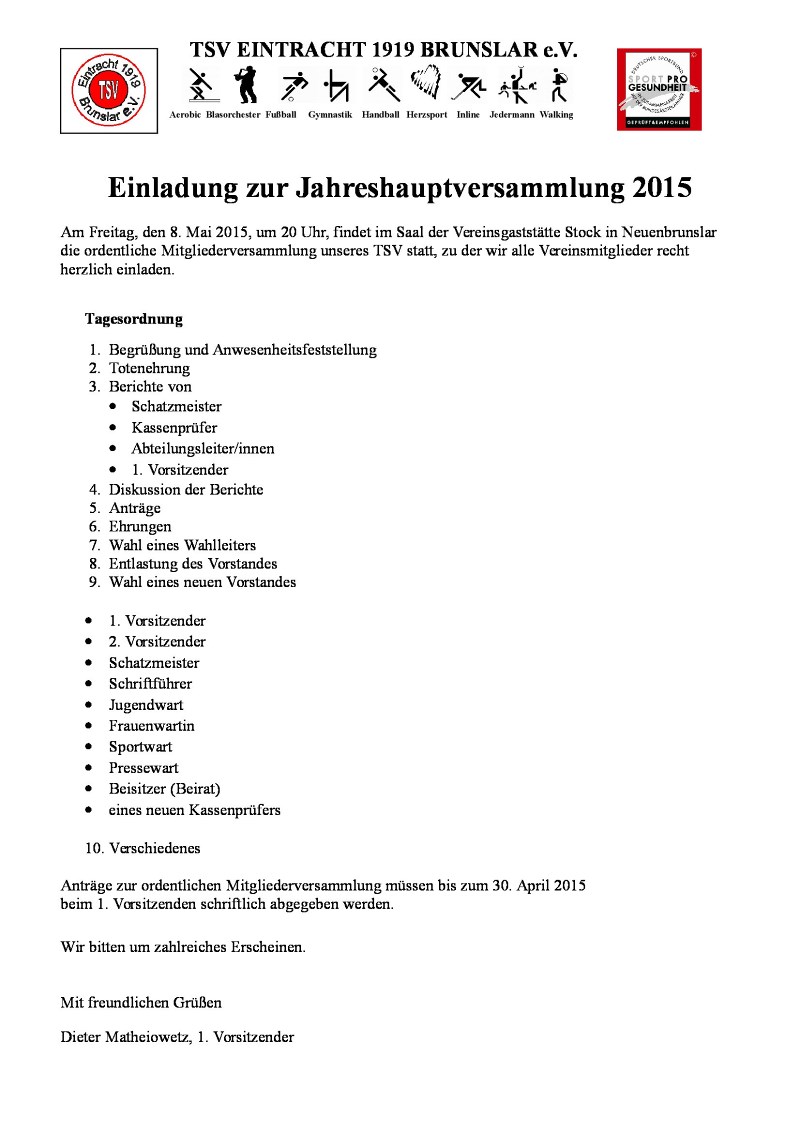 Bei der Jahreshauptversammlung des TSV Brunslar, am Freitag, den 8.Mai 2015, im Saal des Vereinsgasthauses Stock in Neuenbrunslar, standen auch Neuwahlen des Vorstandes an.