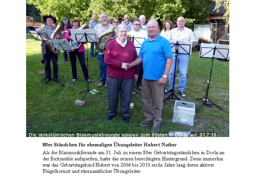 Fr., 31. Juli, 80er Ständchen für Hubert in Dorla, 19 Uhr