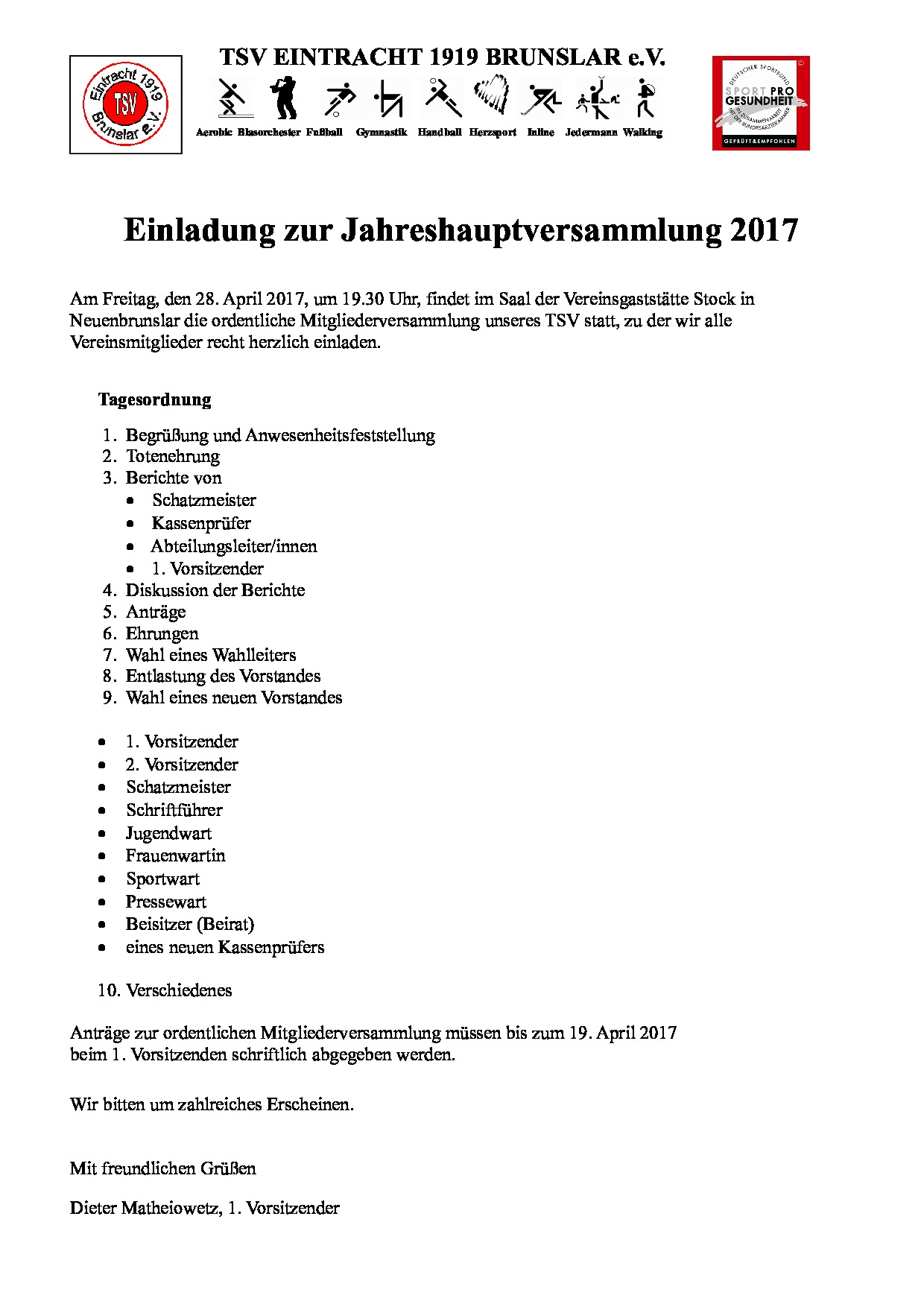 Der Vorstand unseres TSV hatte zur ord. MItgliederversammlung eingeladen in dessen Verlauf auch Neuwahlen anstanden.