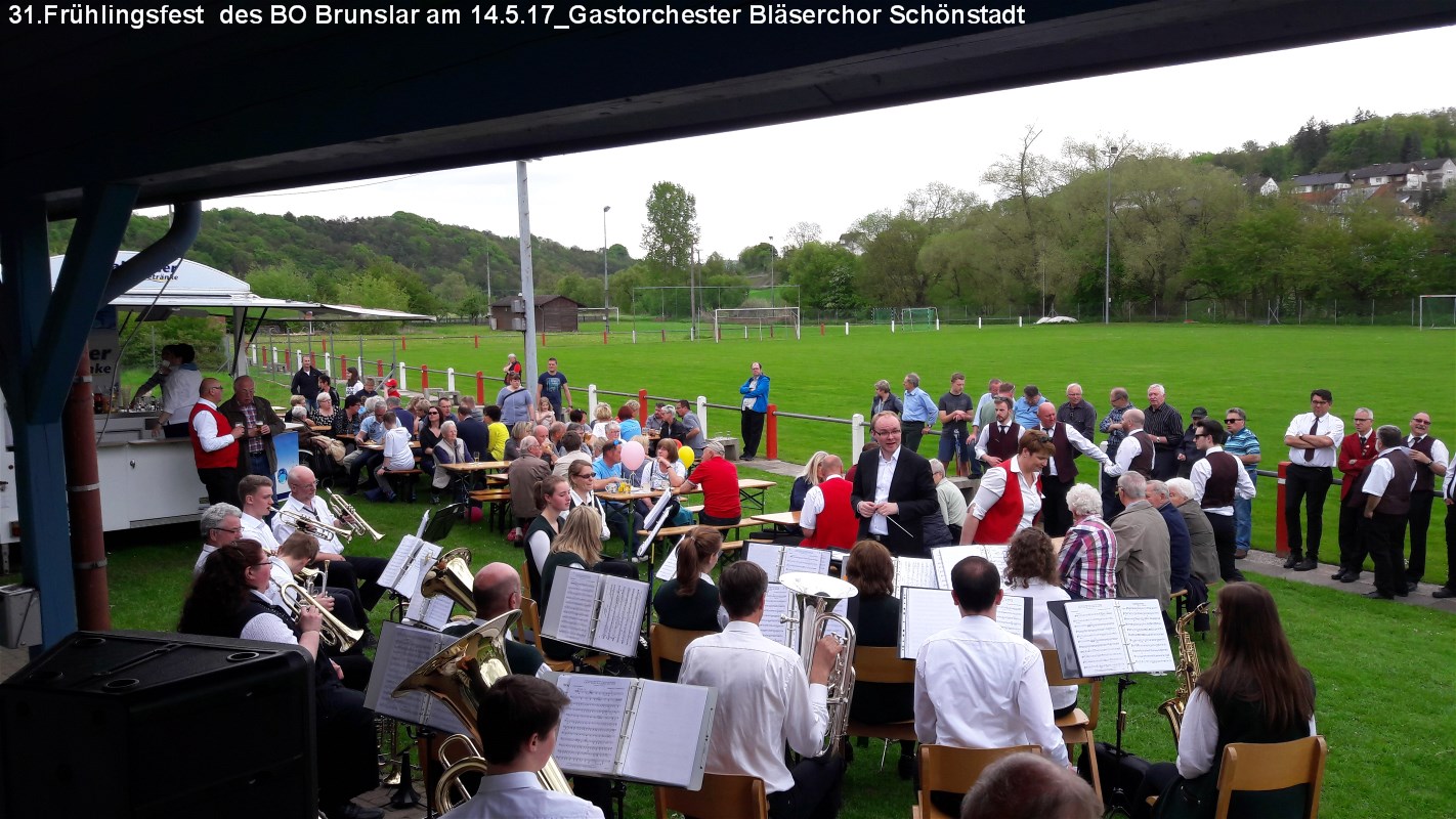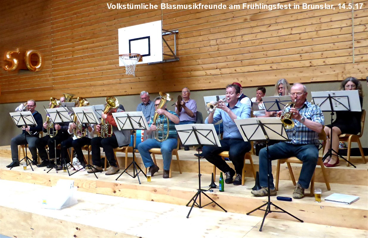 Mit den Auftritten von drei befreundeten Gastorchestern, den Volkstümlichen Blasmusikfreunden, den eigenen Blockflötengruppen und dem Jugendblasorchester erklang am Sonntag, 14. Mai, fünf Stunden lang Musik auf dem Sportplatz in Neuenbrunslar: Es war die musikalische Fortsetzung der Feierlichkeiten anlässlich „50 Jahre Musik im TSV Eintracht Brunslar“, verpackt in das alljährlich im Mai stattfindende musikalische Frühlingsfest. Am Vorabend hatte das Blasorchester Brunslar (BOB) selbst ein Jubiläums-Festkonzert mit Grußworten und Ehrungen in der Sporthalle gegeben.