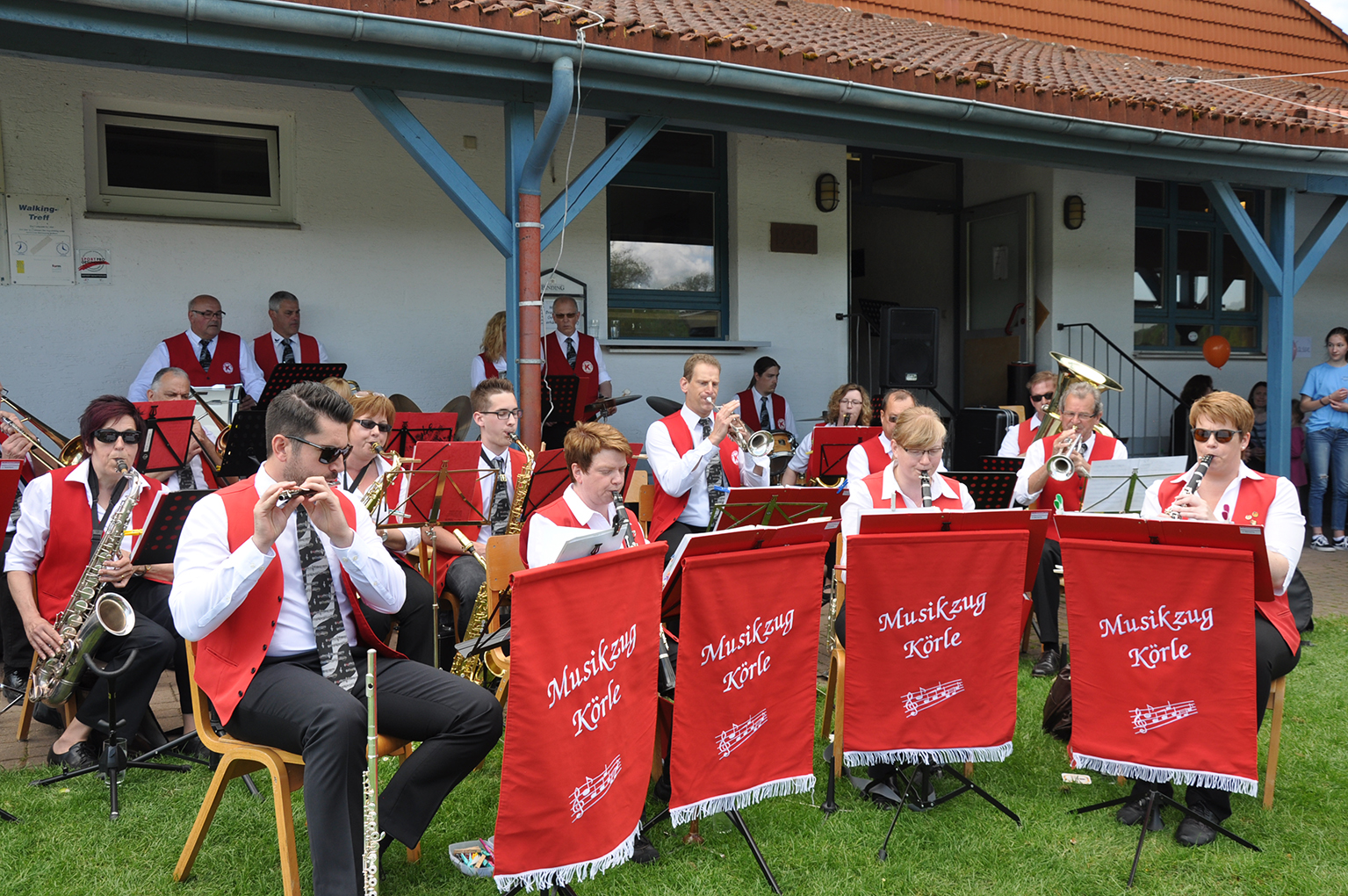 Im Anschluss war der Rasen frei für den Musikzug Körle als erstem Gastorchester. Bei Musik zum Mitwippen und –swingen hatten die Gäste Gelegenheit, sich das ein oder andere Tortenstück vom üppigen Kuchenbüfett oder eine Bratwurst schmecken zu lassen. Auch für Kaffee und kühle Getränke war gesorgt.