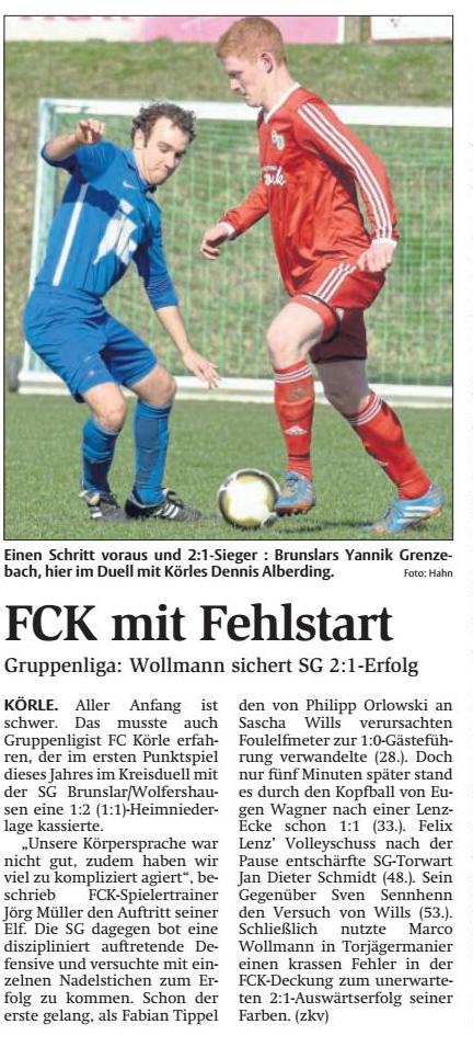 15:00 Körle I – Brunslar/Wolfershausen I        1:2
