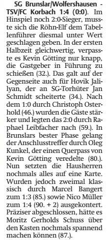 15 Uhr Brunslar/Wolfershausen I – Korbach I   1 : 4