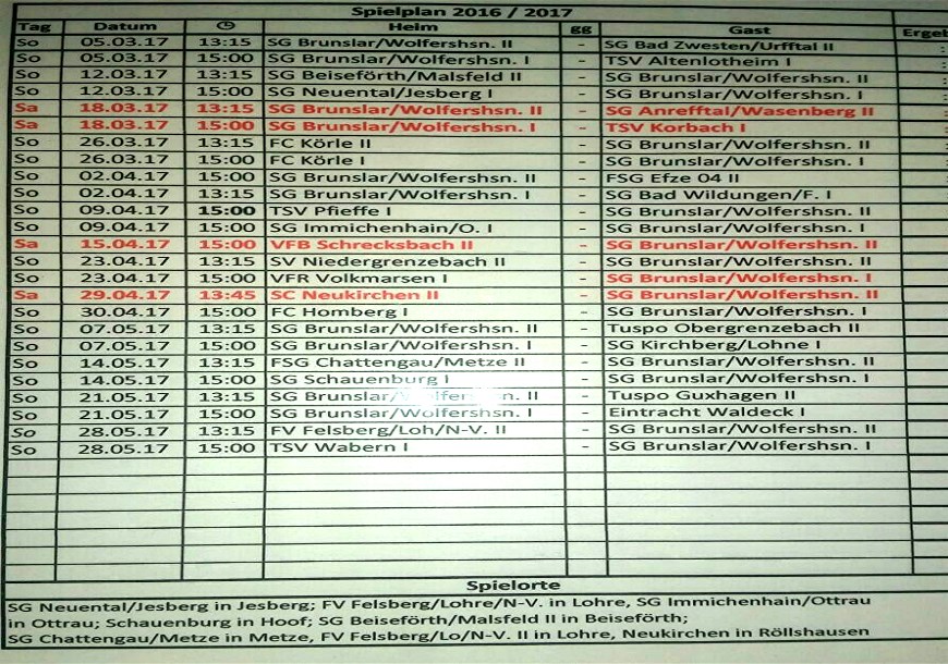 13:15 Körle II – Brunslar/Wolfershausen II      1:2