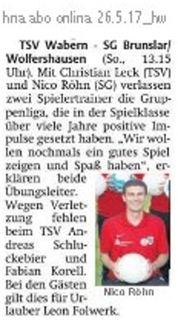 Sa., 03.06.17, 16:00 Uhr in Wolfershausen – Vorletzten KL A 2, FSG Borken/Singlis/Frielendorf