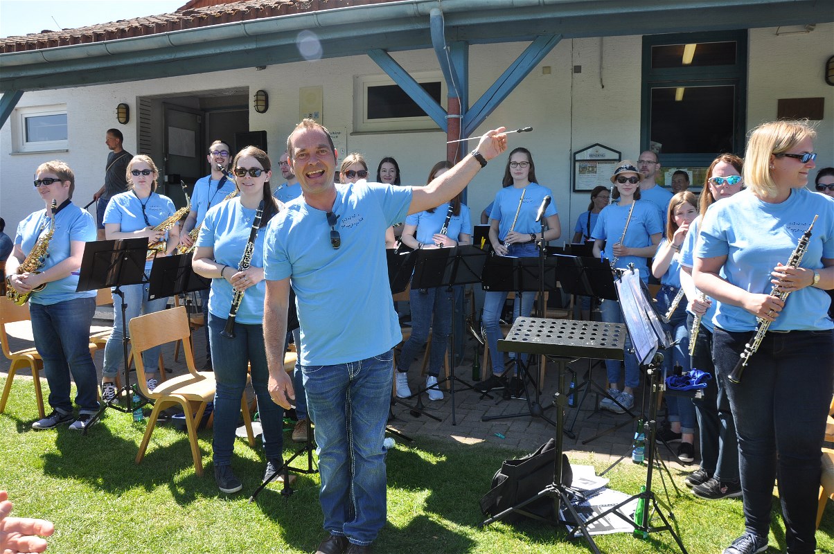 Mit Polkas, Walzern, Märschen und Volksliedern wie „Der Mai ist gekommen“ setzten die Volkstümlichen Blasmusikfreunde einen musikalischen Schlusspunkt hinter einen gelungenen Nachmittag. Was auch am herrlich sommerlichen Wetter lag (und das Anfang Mai!), das für eine locker-leichte Atmosphäre bei den Zuhörerinnen und Zuhörern auf den Festzeltgarnituren sorgte. Mit einer Tombola, Schminken und Spielen hatten derweil auch die Kinder ihren Spaß. (Bericht Petra Schaumburg-Reis)