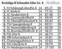 | 14:15 Uhr | SG Bad Zwesten/Urfftal II | – | SG Brunslar/Wolfershausen II 4 : 2 |