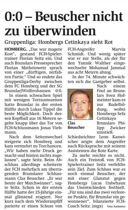 | 15:00 Uhr | FC Homberg | – | SG Brunslar/Wolfershausen I 0 : 0 |