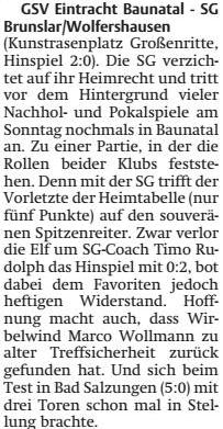 | 15:00 Uhr | Eintracht Baunatal | – | SG Brunslar/Wolfershausen I 2 : 0 |