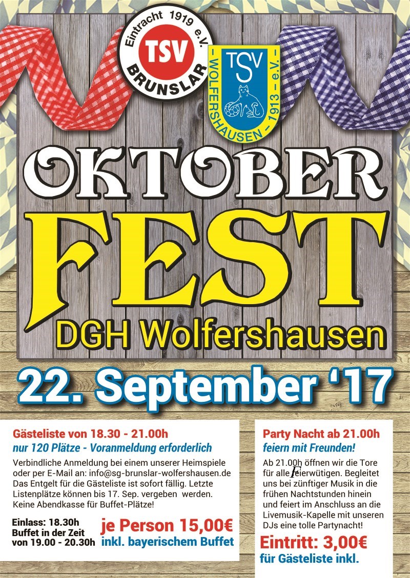 Unsere Fußball SG feiert am Fr. 22.Sept. ihr Oktoberfest