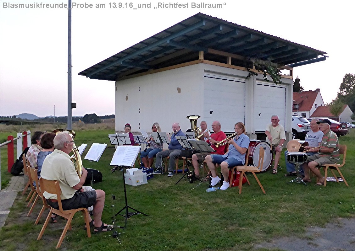 Probe der Blasmusikfreunde als „kleine Richtfestfeier“ am 13.9.
