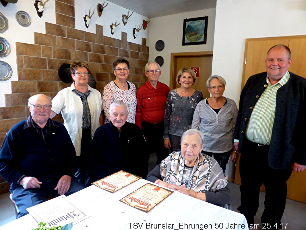 Wie bereits im vergangenen Jahr 2016 konnte auch in diesem Jahr wieder eine separate Feier für Ehrungen langjähriger Vereinsmitglieder im TSV Eintracht 1919 Brunslar durchgeführt werden. Eingeladen waren 15 Personen, die für 50-jährige Vereinszugehörigkeit geehrt werden sollten.