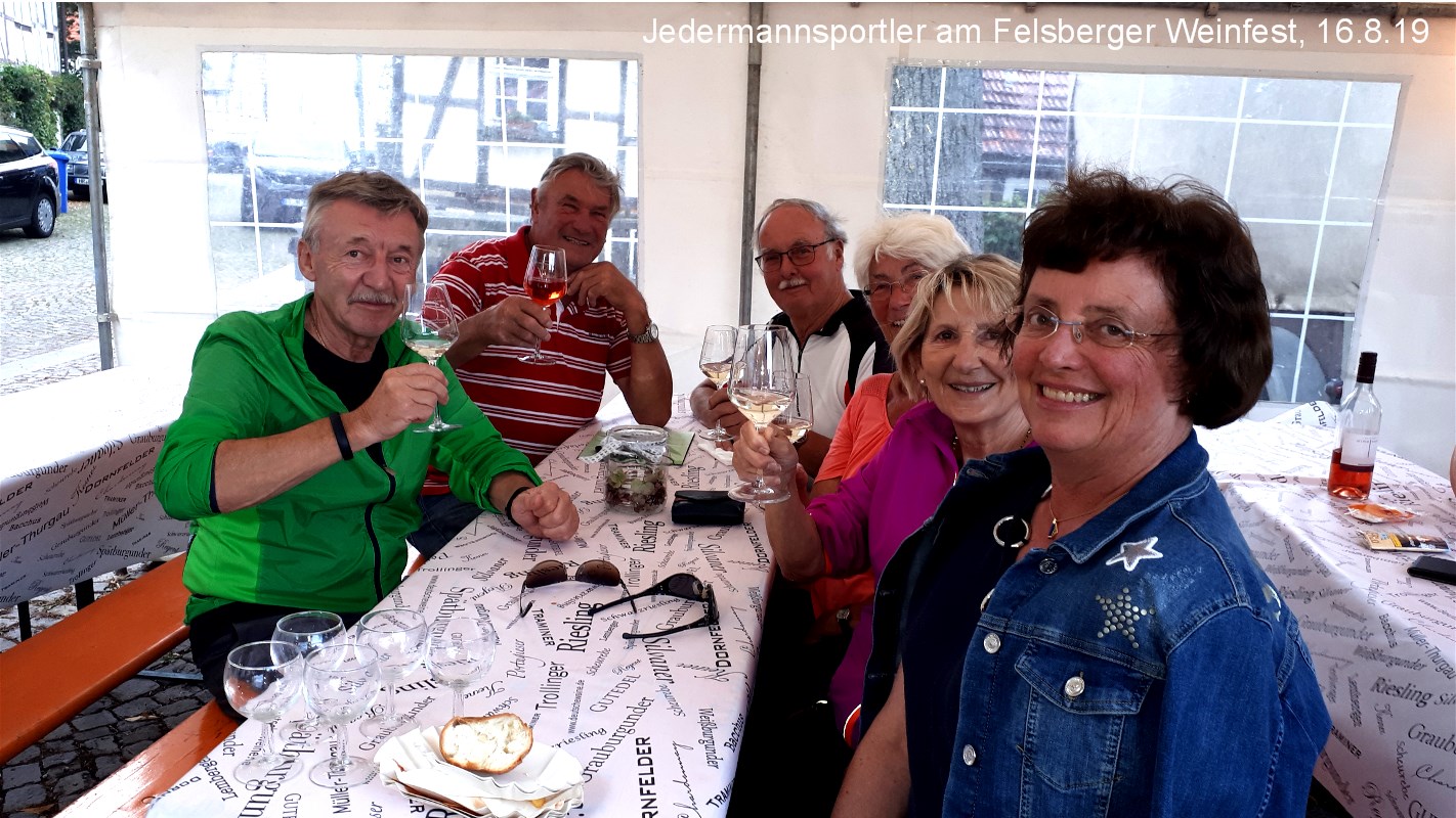 Am Freitag, 16.8., endete das Sommerradeln mit einer Abschlusstour zum Felsberger Weinfest. Dort genoss man den Abend in gemütlicher Runde, eh es wieder auf die Heimfahrt ging.