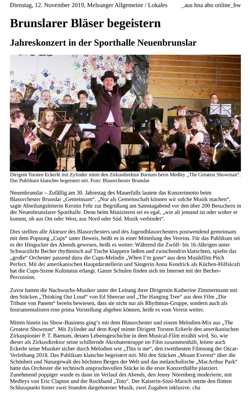 Zu seinem Jahreskonzert ludt das Blasorchester Brunslar am Samstag, 9. November, in die Sporthalle in Neuenbrunslar ein.