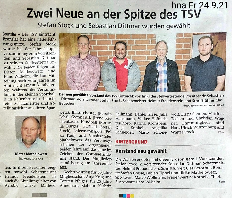 JHV 2021 mit Neuwahlen am Do. 26.8., 19 Uhr, Kl. Sporthalle
