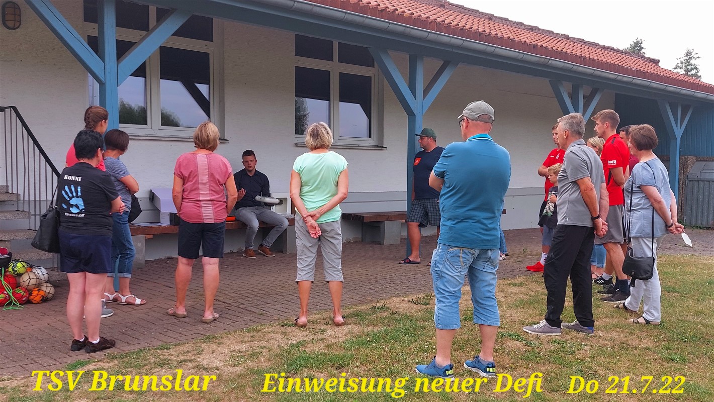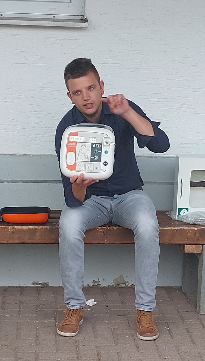 Für Donnerstag, 21.7.22, hatte TSV-Vorsitzender Stefan Stock zur Übernahme und Einweisung eines neuen Defi an die Sporthalle eingeladen.