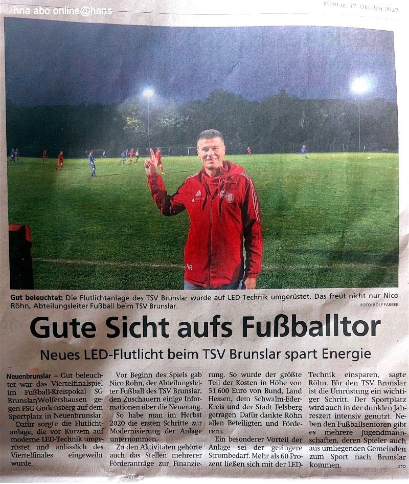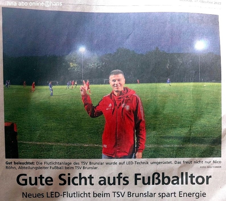 Mi 12.10.22, 19 Uhr, Einweihung der auf LED-Technik umgerüsteten Flutlichtanlage