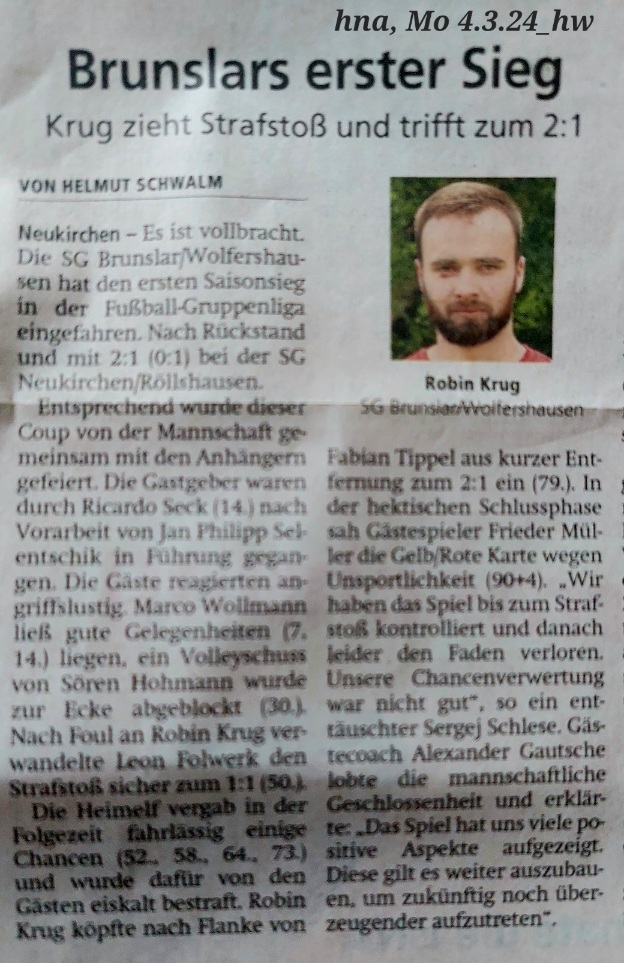 Sa. 2.3.24 16:30 Uhr SG Neukirchen/Röllshausen – SG Brunslar/Wolfershausen I 1 : 2 (1:0)
