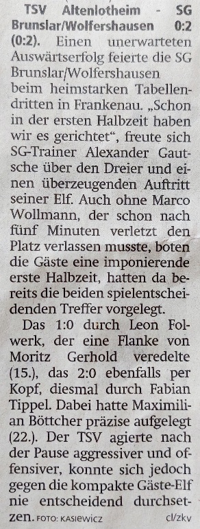 So 24.9.23, 15 Uhr, SG Brunslar/Wolfershausen I – TSV Altenlotheim 0 : 3 (0:1)