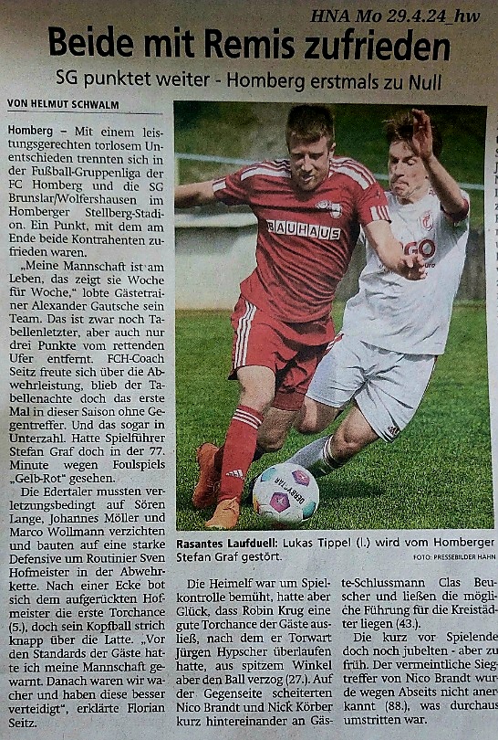 So 28.4.24, 15 Uhr, FC Homberg – SG Brunslar/Wolfershausen I 0:0