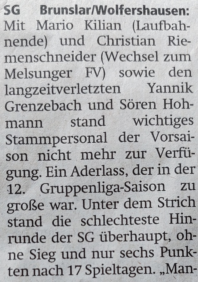 So 7.4.24, 15 Uhr, SG Brunslar/Wolfershausen I – SG Bad Wildungen/Fr. 0:2 (0:0)