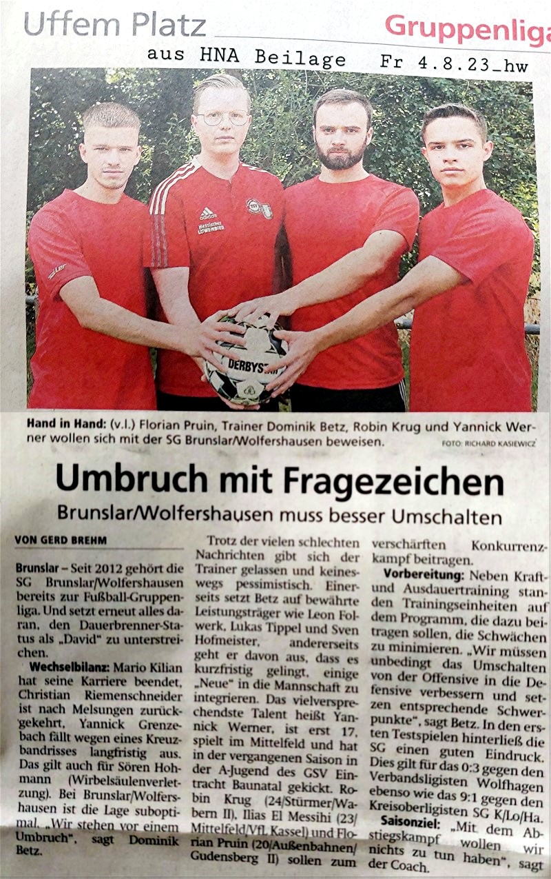 So 17.9.23, 15 Uhr, SG Bad Wildungen-Fr. – SG Brunslar/Wolfershausen I 3 : 1 (1:0)