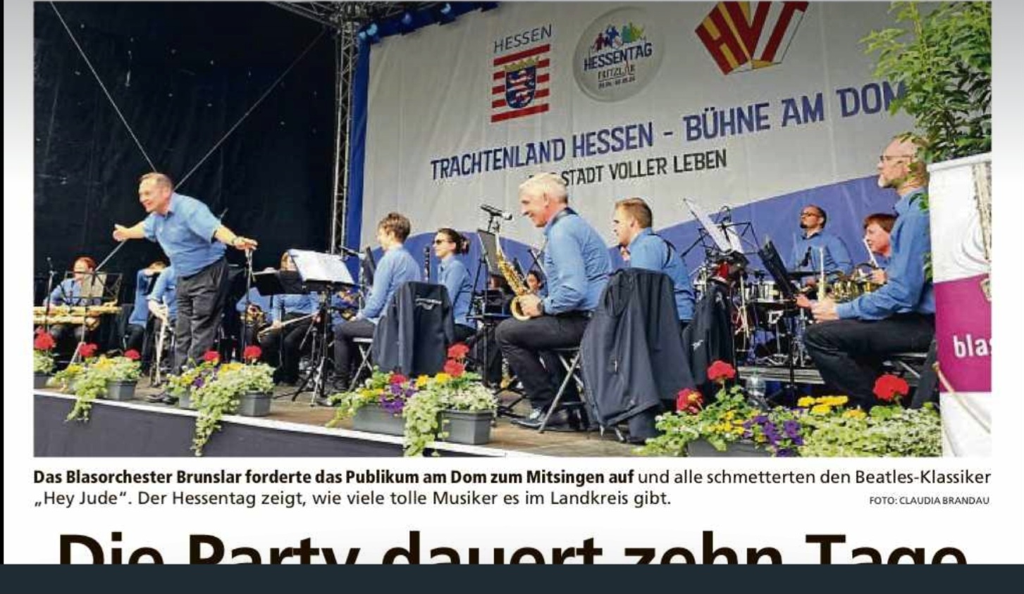Auf dem Hessentag – dieses Mal ganz nah, spielen wir für Sie am Freitag, 31.Mai 2024, auf der Bühne am Fritzlarer Dom und freuen uns auf viele Gäste aus nah und fern.