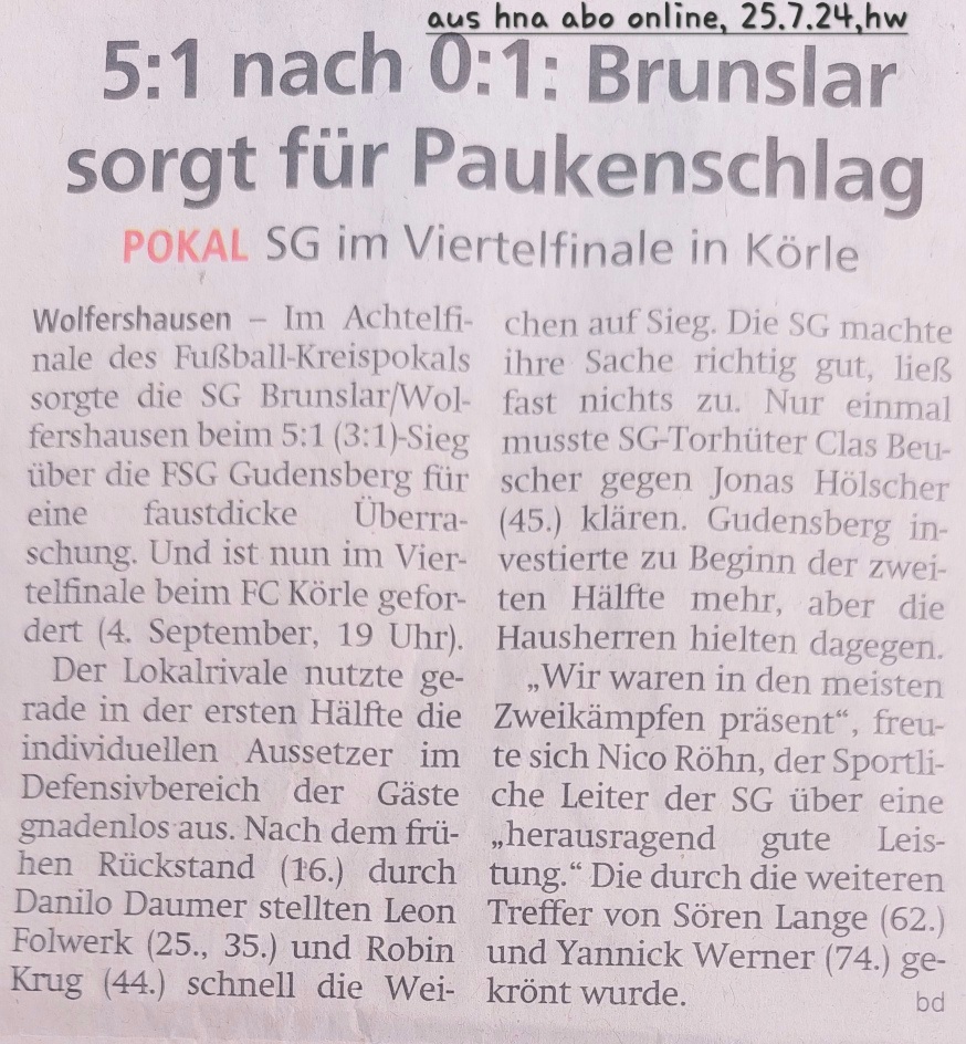 SG Brunslar/Wolfershausen I – FSG Gudensberg 5:1 (3:1)